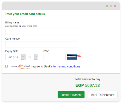 No, you have to pay through credit card from CIB, Emirates NBD, Mashreq, Attijariwafa bank, Alexandria bank or Banque Misr.